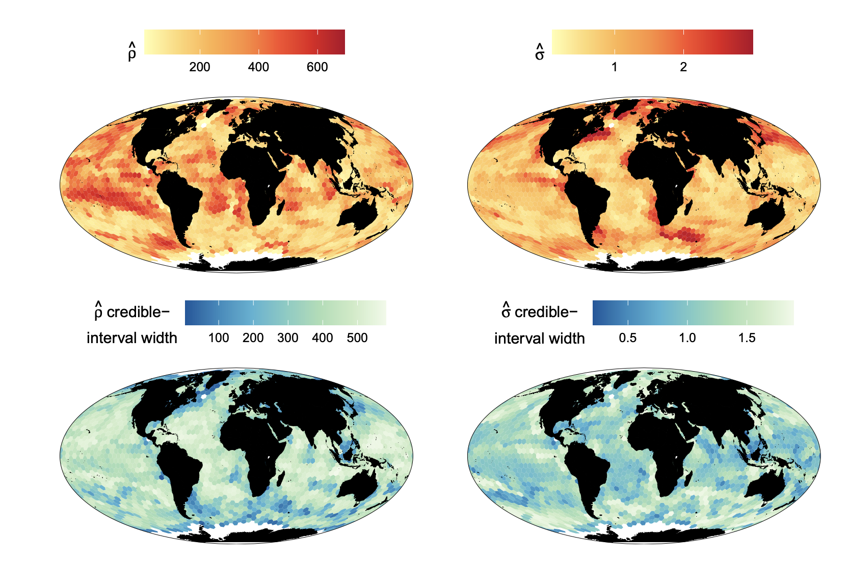We collaborate with the program Securing Antarctica’s Environmental Future (SAEF) to develop statistical methods for Antarctic research, including techniques for predicting sea-level rise contribution, calibrating ice sheet models, and modelling biodiversity in polar ecosystems. This work requires fusion from multiple data sources—such as satellites, numerical models, and in-situ observations—as well as statistical downscaling and high-performance computing to enable inference at scale.